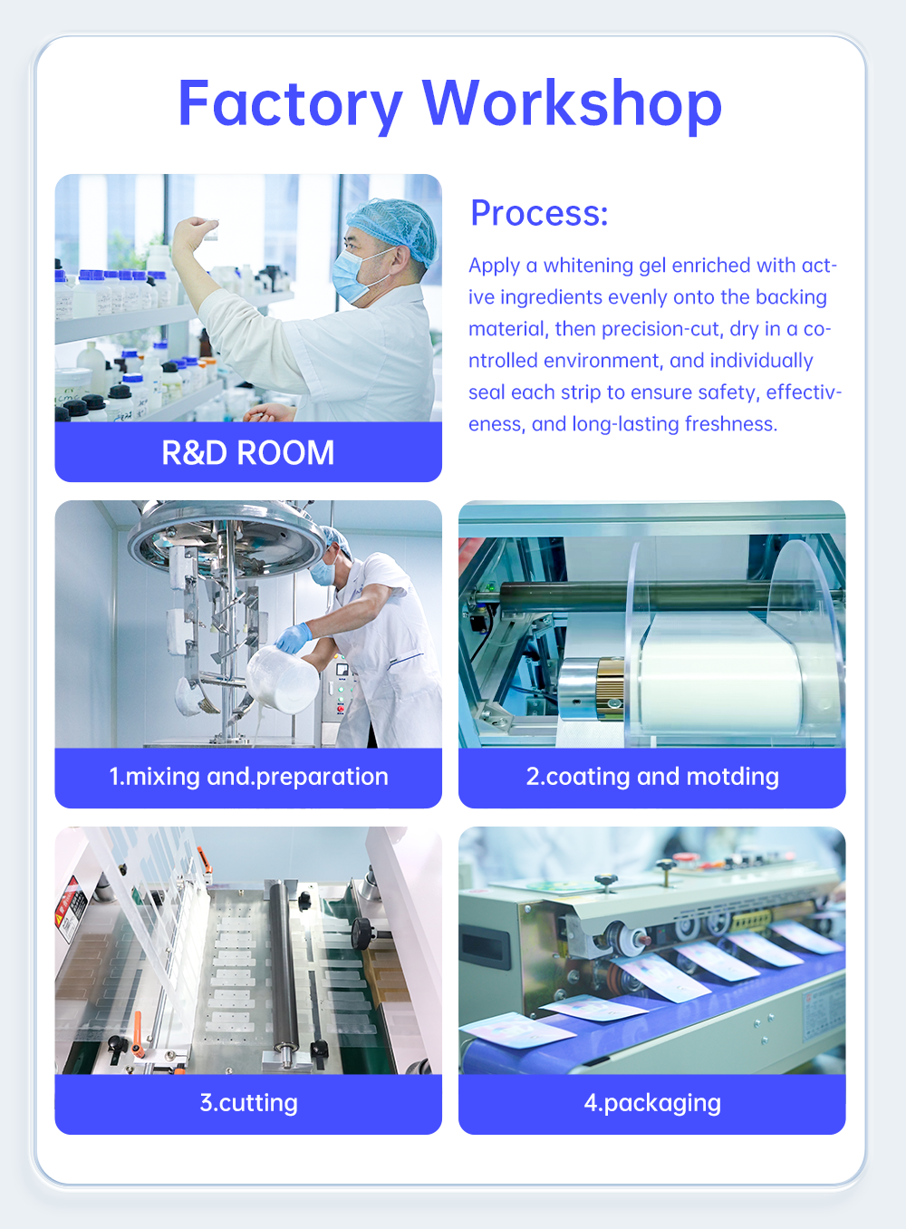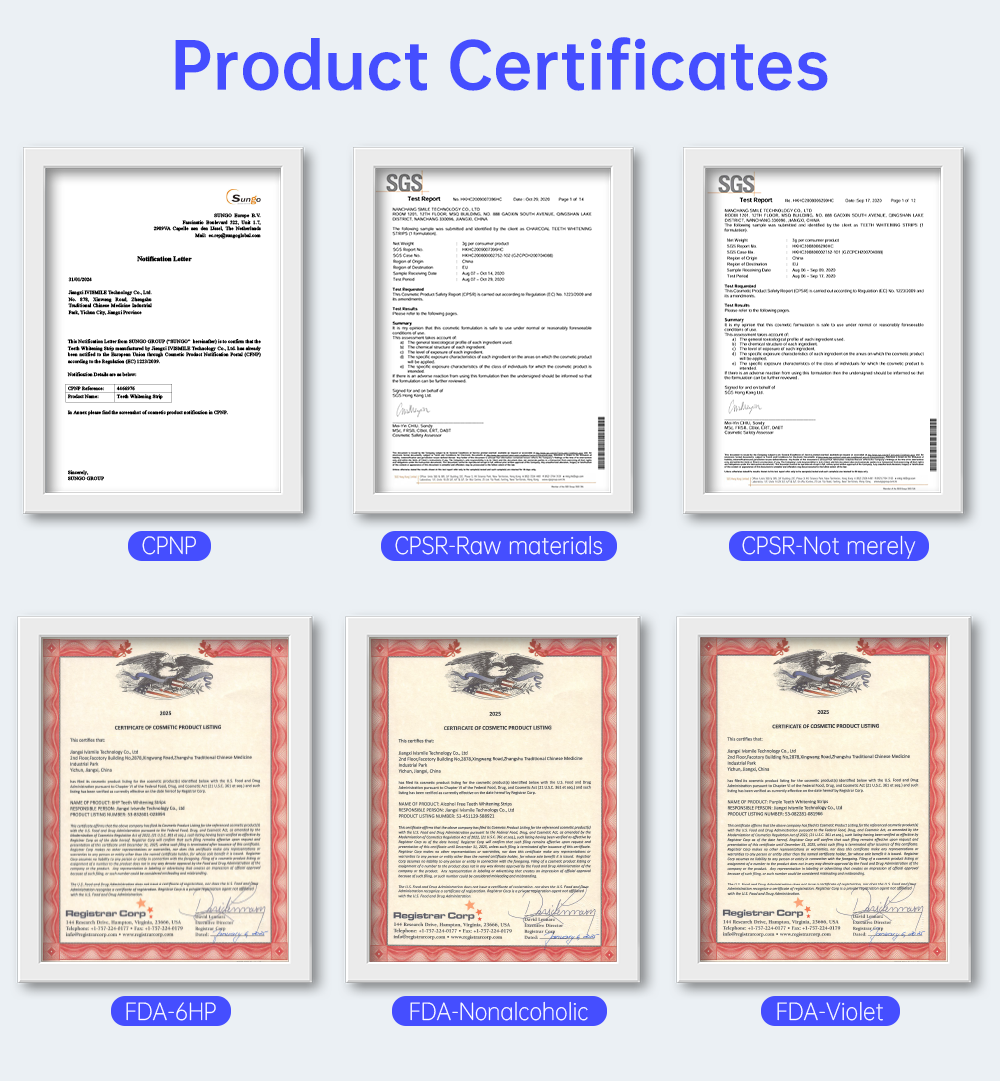 IVISMILE: With over 6 years of experience in the Oral Care industry and a factory area spanning more than 20,000 square meters, we have established popularity in regions including the US, UK, EU, Australia, and Asia. Our robust R&D capabilities are complemented by certifications such as CE, ROHS, CPSR, and BPA FREE. Operating within a 100,000-level dust-free production workshop ensures the highest quality standards for our products.