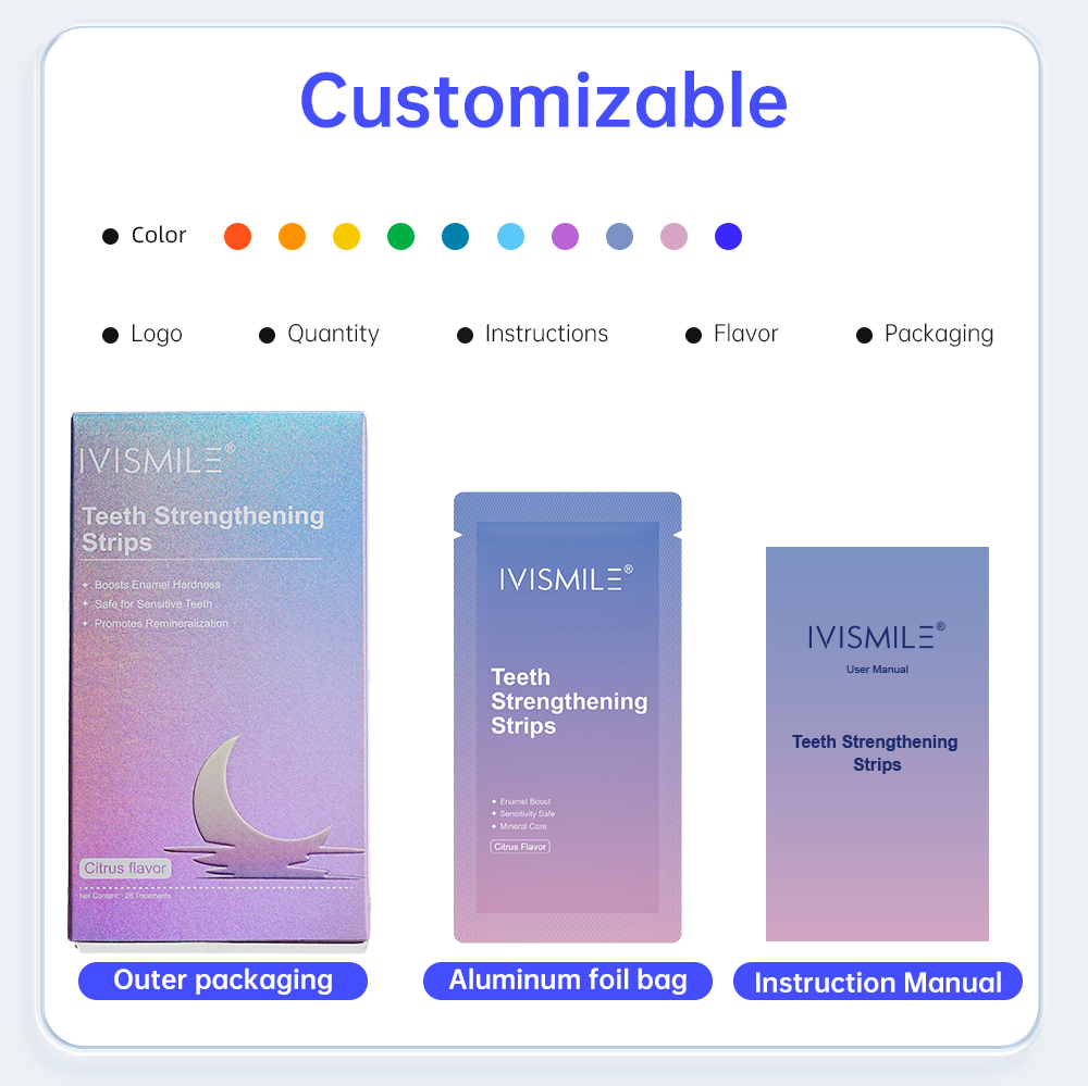 IVISMILE: We specialize in customizing all teeth whitening and cosmetic packaging products to suit your preferences, supported by our skilled design team. OEM and ODM orders are warmly welcomed.