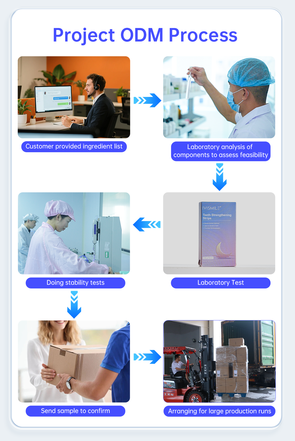 IVISMILE: We always provide a pre-production sample before mass production. Prior to delivery, our quality inspection departments meticulously check each item to ensure that all goods shipped are in excellent condition. Our partnerships with renowned brands like Snow, Hismile, PHILIPS, Walmart and others speak volumes about our credibility and quality.
